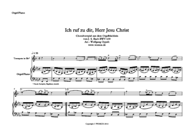 Ich ruf zu dir Herr Jesu Christ - Sheet Music for trumpet in Bb + organ Johann Sebastian Bach (arr. WO)