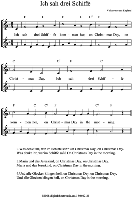 Ich sah drei Schiffe - Sheet Music for Recorder Duet Weihnachtslied (sehr einfach)