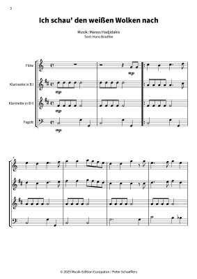 Ich schau´ den weißen Wolken nach - Sheet Music for Woodwind Quartet Nana Mouskouri