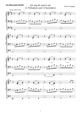 Ich sing dir mein Lied GL (Österreich-Teil) 867 - Sheet Music for Organ solo prelude and 2 chorale movements Roman Jungegger