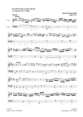 Ich will den Herrn loben allezeit - Sheet Music for soprano, violin and continuo Johann Nicolaus Hanff (1663-1711)