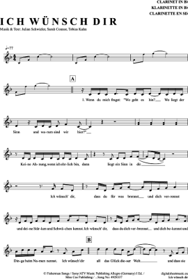 Ich Wünsch Dir - Sheet Music for Clarinet in B-flat Sarah Connor