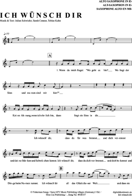 Ich Wünsch Dir - Sheet Music for Alto Saxophone Sarah Connor