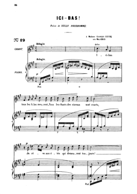 Ici-bas Op.8 No.3 - Sheet Music for Medium Voice and Piano Gabriel Fauré