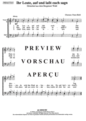 Ihr Leute, auf und laßt euch sagn - Sheet Music for male choir Hirtenlied aus dem Bregenzer Wald