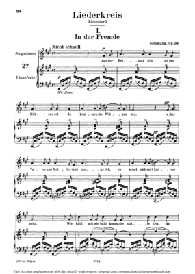 In der Fremde Op.39 No.1 - Sheet Music for Medium Voice and Piano Robert Schumann