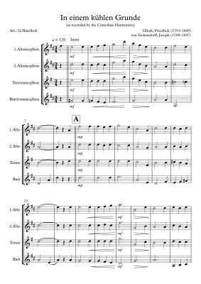 In einem kühlen Grunde - Sheet Music for Saxophone Quartet AATB Volkslied