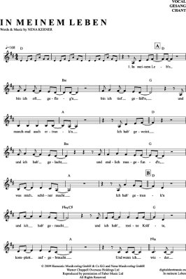 In Meinem Leben - Sheet Music for vocals Nena