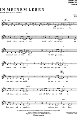 In Meinem Leben - Sheet Music for Keyboard Nena