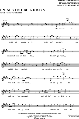 In Meinem Leben - Sheet Music for Tenor Saxophone Nena