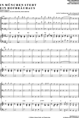 In München steht ein Hofbräuhaus - Sheet Music for Trombone Trio + Piano Marianne und Michael