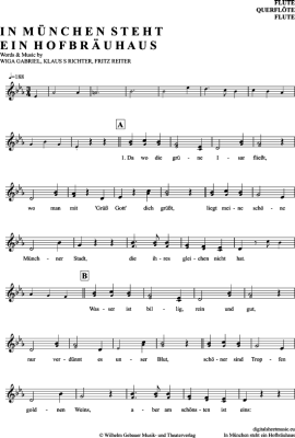 In München Steht Ein Hofbräuhaus - Sheet Music for transverse flute Marianne Und Michael