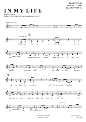 In My Life - Sheet Music for Klarinette in B The Beatles