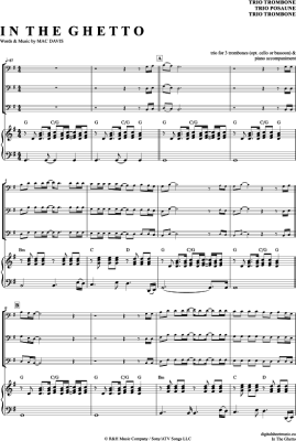 In The Ghetto - Sheet Music for Trombone Trio + Piano Elvis Presley
