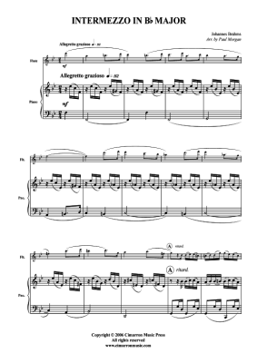 Intermezzo in B-Dur - Sheet Music for flute + piano Johannes Brahms