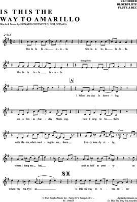 Is This The Way To Amarillo - Sheet Music for recorder Hermes House Band/Tony Christie