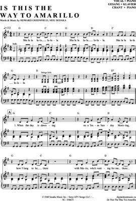 Is This The Way To Amarillo - Sheet Music for Piano and Voice Hermes House Band/Tony Christie