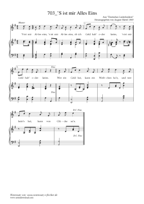 ist mir Alles Eins - Sheet Music for Piano and Voice Aus "Deutsches Liederlexikon" A. Härtel (1865)