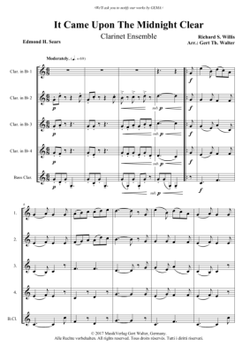 It Came Upon The Midnight Clear - Sheet Music for Klarinettenquintett Richard S. Willis