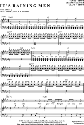 It´s raining men - Sheet Music for Piano and Voice Weather Girls