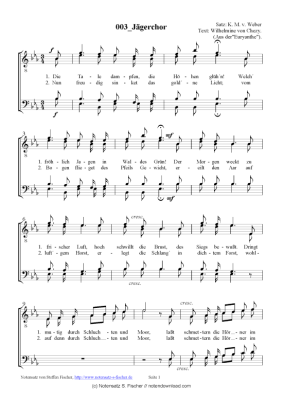 Jägerchor - Sheet Music for male choir K. M. v. Weber / Wilhelmine von Chezy.