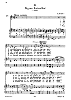 Jägers Liebeslied D.909 - Sheet Music for High Voice and Piano Franz Schubert