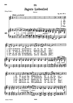 Jägers Liebeslied D.909 - Sheet Music for Low Voice and Piano Franz Schubert