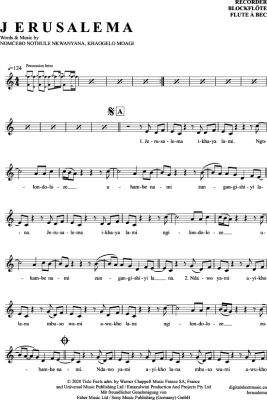 Jerusalema - Sheet Music for recorder Master Kg und Nomcebo Zikode