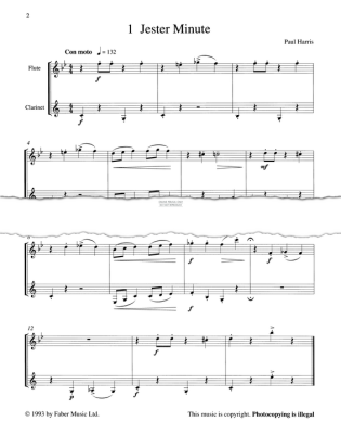 Jester Minute, composed by Paul Harris and arranged for flute and clarinet duet in digital sheet music format.