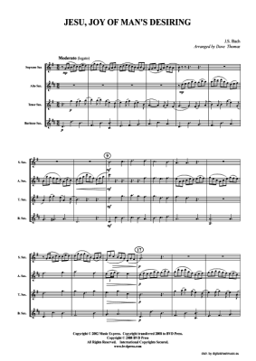 Jesu bleibet meine Freude - Sheet Music for saxophone quartet SATB or AATB J. S. Bach (arr. Thomas)