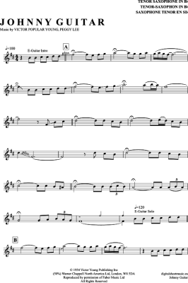 Johnny Guitar - Sheet Music for Tenor Saxophone The Shadows