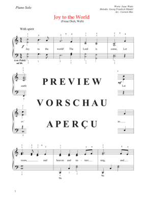 Joy to the World (Freue Dich, Welt) - Sheet Music for Piano Solo Georg Friedrich Händel
