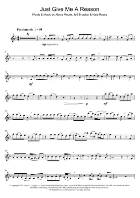 Just Give Me A Reason (featuring Nate Ruess) - Sheet Music for P!nk