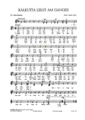 Kalkutta liegt am Ganges - Sheet Music for vocals + chords Vico Torriani