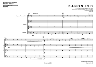 Kanon in D - Sheet Music for recorder + organ Johann Pachelbel (arr. WO)
