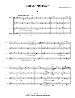 Kara´s Musings - Sheet Music for Saxophone Quartet AAAT John Dunlap