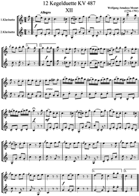 Kegelduette KV 487 Nr. 12 - Sheet Music for Wolfgang Amadeus Mozart (1756-1791)