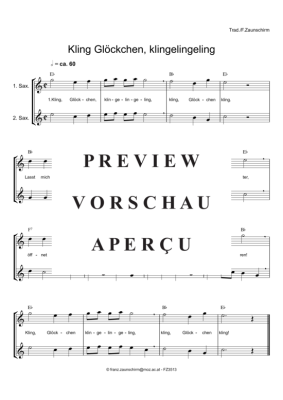 Kling, Glöcklein kling - Sheet Music for Saxophone duet 2x alto saxophone Zaunschirm, Franz