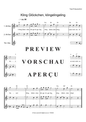 Kling, Glöcklein kling - Sheet Music for Saxophone Trio AAT+Akkorde Zaunschirm, Franz