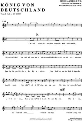 König von Deutschland - Sheet Music for Tenor Saxophone Rio Reiser