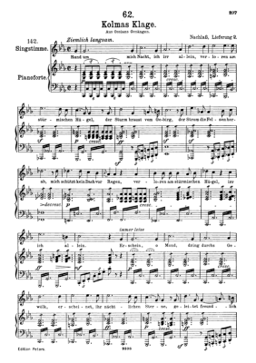 Kolmas Klage D.217 - Sheet Music for High Voice and Piano Franz Schubert