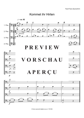 Kommet ihr Hirten - Sheet Music for Quartet for 4x trombone Traditional