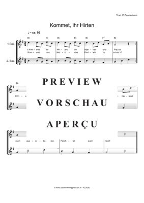 Kommet ihr Hirten - Sheet Music for Saxophone duet 2x alto saxophone Zaunschirm, Franz