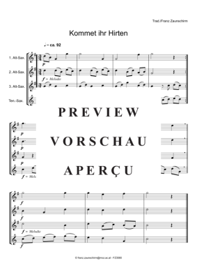 Kommet ihr Hirten - Sheet Music for Saxophone Quartet AAAT Zaunschirm, Franz