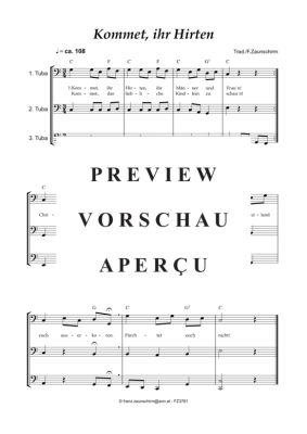 Kommet ihr Hirten - Sheet Music for Tuba Trio Traditional (Zaunschirm)