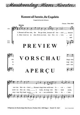 Kommt all herein ihr Engelein - Sheet Music for Frauenchor, 3-stimmig Krippenlied aus der Schweiz