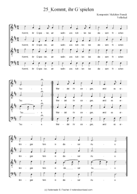 Kommt, ihr G´spielen - Sheet Music for mixed choir Melchior Franck Volkslied