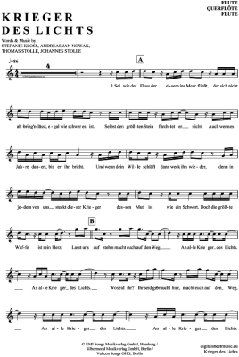 Krieger des Lichts - Sheet Music for transverse flute Silbermond