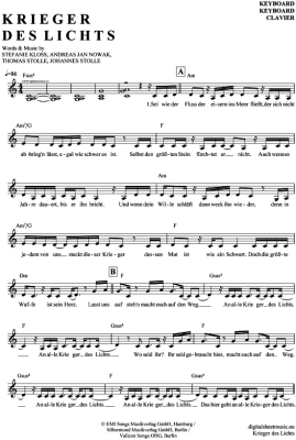 Krieger des Lichts - Sheet Music for Keyboard Silbermond
