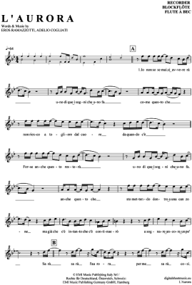 L'Aurora - Sheet Music for Recorder Eros Ramazzotti